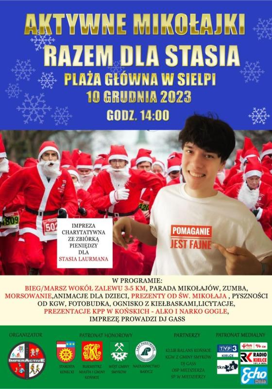 Organizatorzy przygotowali dla licznie zgromadzonych uczestników wydarzenia różne konkurencje jak: bieg Mikołajów i Mikołajek, marsz z Mikołajami wokół zalewu, dla najmłodszych-pogoń za Mikołajem oraz morsowanie w sielpiańskim zalewie w przeręblu w kształcie czapki Mikołaja. Na uczestników czekał poczęstunek przygotowany przez między innymi Nadleśnictwo Barycz, koła gospodyń wiejskich zrzeszonych Polskim Związku Kół Gospodyń Wiejskich oraz przez samych organizatorów – Imper Active.