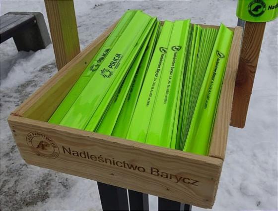 Pod tym hasłem już kolejny raz we wspólnej inicjatywie Komendy Powiatowej w Końskich oraz Nadleśnictwa Barycz, zainicjowana została akcja skierowana do pieszych uczestników ruchu drogowego. Leśnicy oraz Policjanci zachęcają do noszenia elementów odblaskowych przypiętych do ubrania lub torebki. Taki niewielki gest w kierunku własnego bezpieczeństwa zwiększ widoczność pieszego z kilku dziesięciu metrów nawet do 200. Niewielki element odblaskowy, w postaci zwijanej opaski z logotypem Lasów Państwowych, w tym roku jako i w poprzednich latach można bezpłatnie pobrać z drzewka choinkowego ustawionego w centrum miasta, przed wejściem do Komendy Policji.